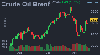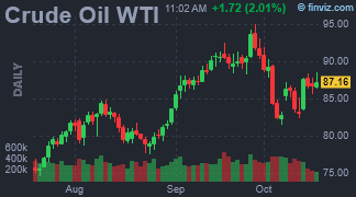 WTI hit a high so far of $88.57 and Brent touched $93 with gold higher nearly $22.